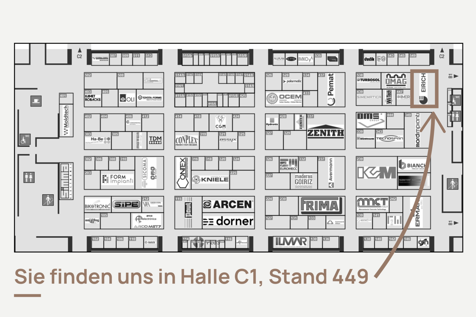 Here you will find all the important information about the exhibition grounds in Munich, how to get to our Eirich stand, as well as train and bus connections:
