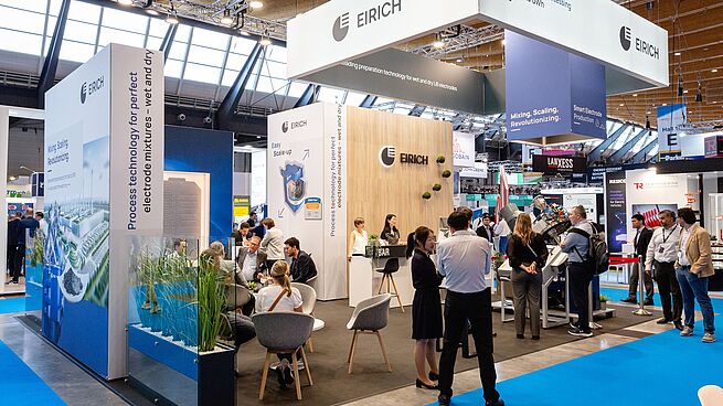 The energy transition is in full swing. This year’s Battery Show Europe in Stuttgart once again underlined the important role battery production has to play here. Not only was Eirich able to impress the specialist audience with its established products for wet electrodes, but the company also brought along the latest technologies for the preparation of dry electrodes. Eirich believes that it is very well positioned in this field, which has huge potential for the future. Numerous inquiries and appointments with top representatives from battery factories and the automotive industry underlined the innovative strength behind the label “made in the Odenwald mountains.”