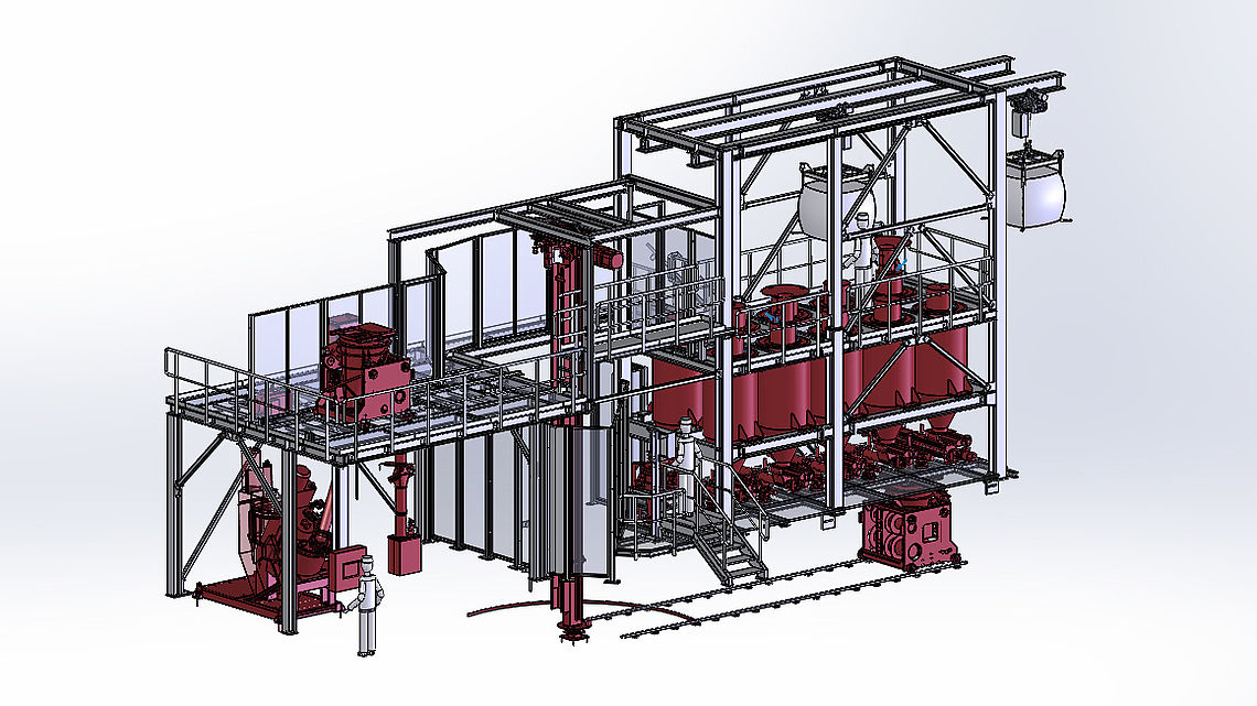 Among other things, the new plant being supplied by Eirich to DTU features 10 silos for aggregates and binding agents as well as an automated dosing system. A movable balance supplies both the new Eirich mixer (150 L) and another existing mixer (250 L). The dosing, weighing and mixing systems are all located on a highly-effective dedusting system. In line with the wishes of DTU, the system will also be available to external research and industry partners for joint research projects and trials.