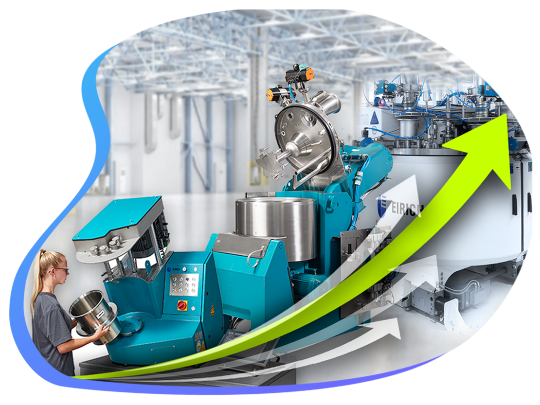La carrera por la mejor tecnología de producción ha comenzado. Elija la ingeniería de procesos de Eirich y póngase a la cabeza del pelotón, pues resulta apta tanto para la producción de lechada de electrodos, como para mezclas secas estructuradas y, además, puede hacer frente a cualquier salto tecnológico que se produzca.