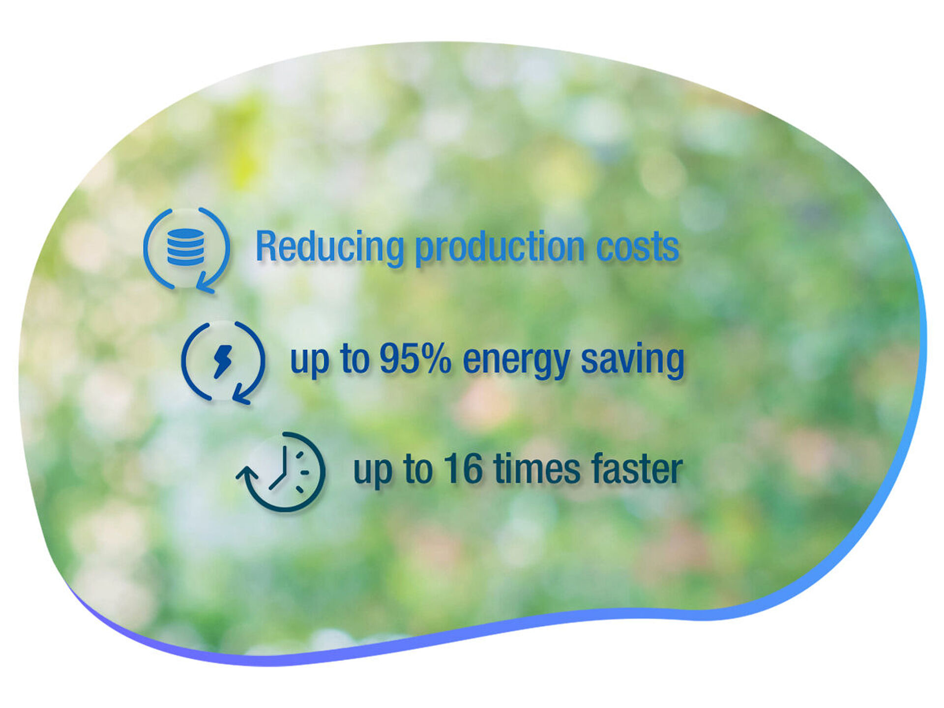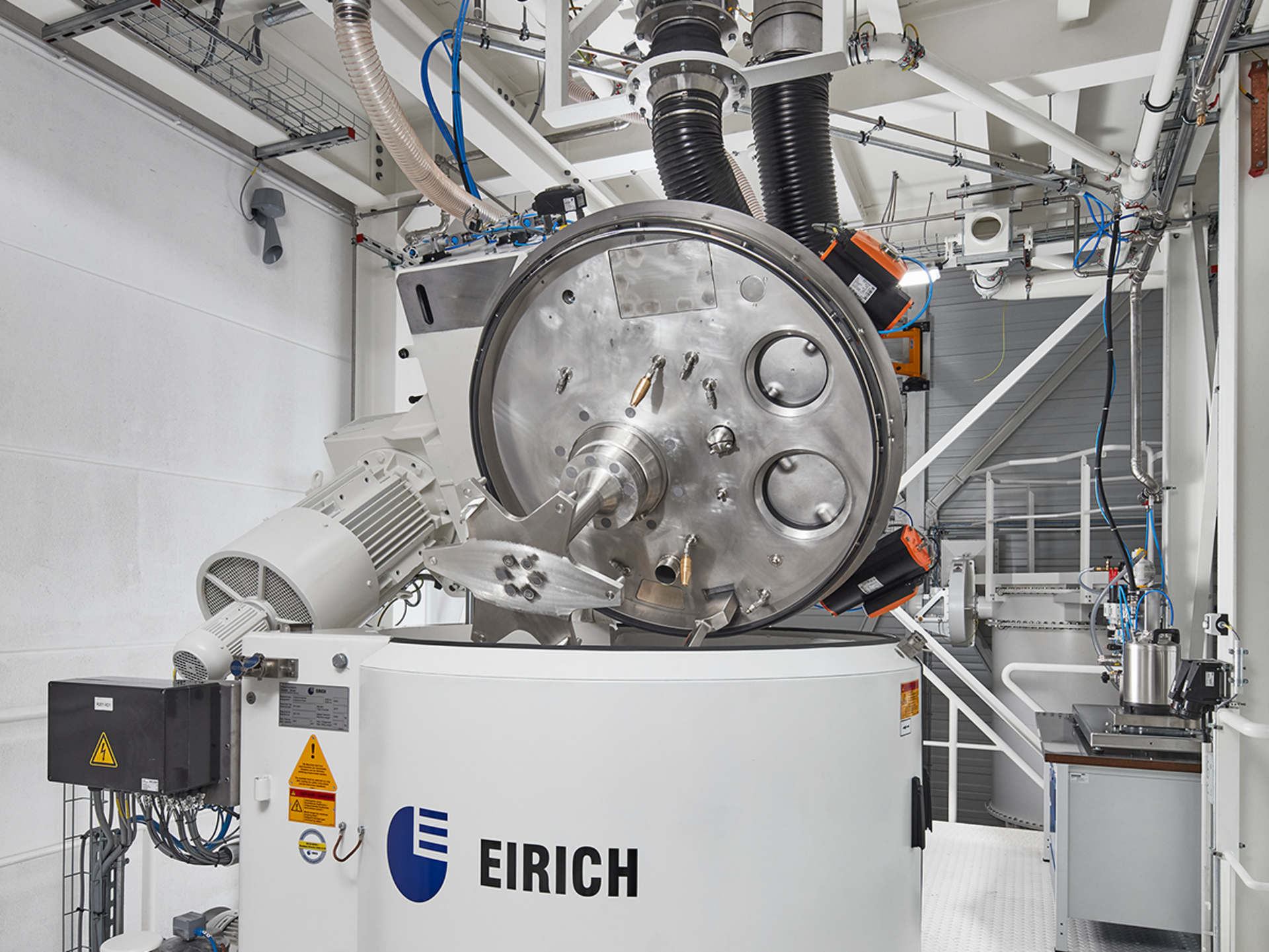 La MixSolver© utiliza mucho menos energía en la producción de lechada de electrodos que una mezcladora planetaria. Para un rendimiento de 20 m3de lechada al día, una mezcladora planetaria necesita aproximadamente 8000 kWh de energía eléctrica al día. En cambio, la mezcladora de Eirich necesita solo 400 kWh, lo que supone un ahorro de costes más que considerable. Y esto ni siquiera tiene en cuenta la energía que se precisa para la refrigeración, que puede ser más o menos la misma cantidad en el caso de una mezcladora planetaria, pero que no es necesaria en absoluto en una mezcladora Eirich. En lugar de poner en marcha entre cinco y nueve mezcladoras planetarias de gran volumen en paralelo, cada una de las cuales tarda entre 4 y 8 horas en completar un lote, puede producir la misma cantidad de lechada en uno o como máximo dos MixSolvers©en tan solo 30 minutos. Además, se beneficiará de una enorme reducción en la necesidad de espacio, pues la mezcladora de Eirich solo necesita aproximadamente un tercio de la superficie que precisan las mezcladoras planetarias.